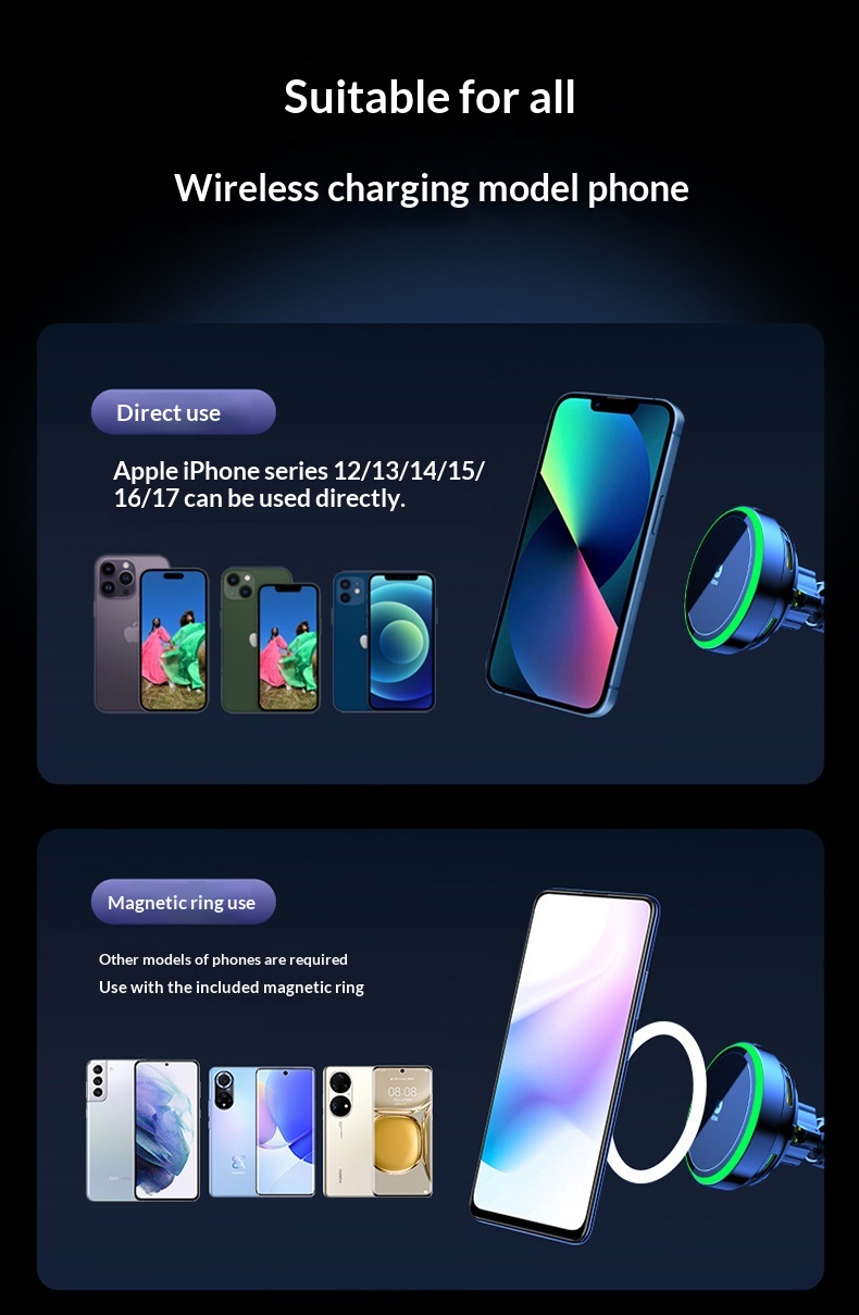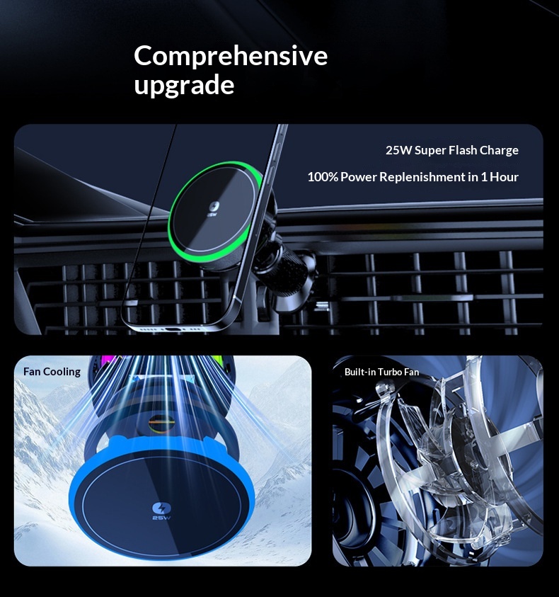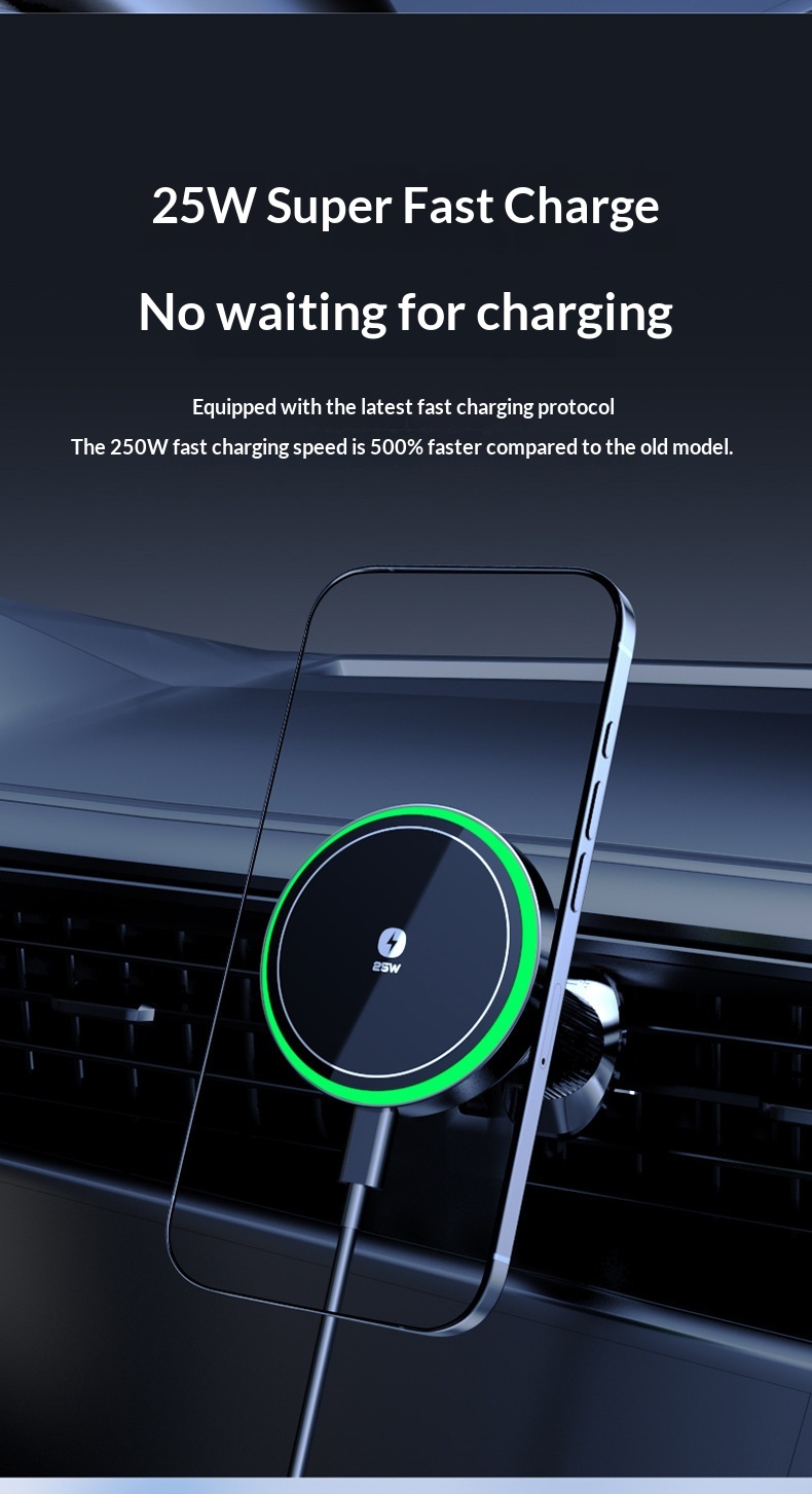 Color: T14 magnetic car mount with air cooling—25W wireless charging; T14 magnetic electroplated light-frame car mount with air cooling—25W wireless charging